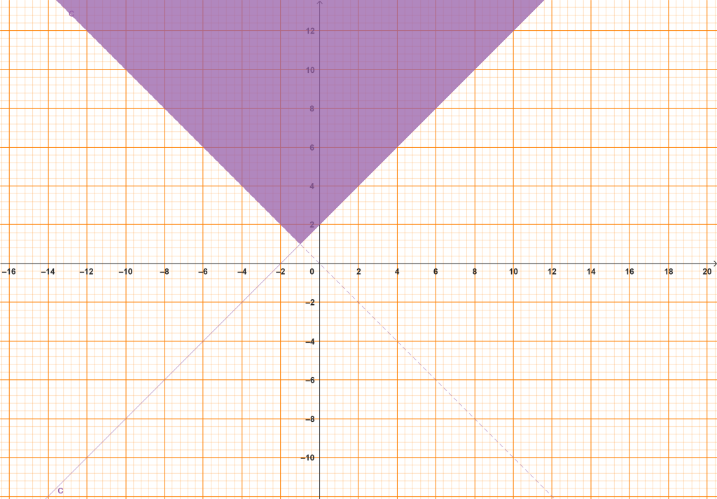 Sketch the graph of the relation R={(x, y): y β₯ x+2 and y >-x, x β R; and y β R}.